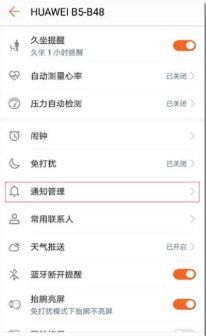 2、进入手环管理页面后,找到“通知管理”并点击进入。