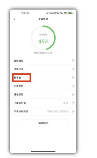 2、在手表管理页面点击找手表,手表会持续响铃30s。