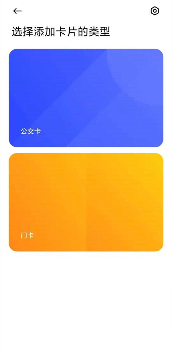 2、在添加新卡片类型中选择【公交卡】或者【门卡】。