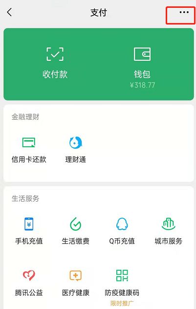 1、在微信的支付面找到右上角的三个点。