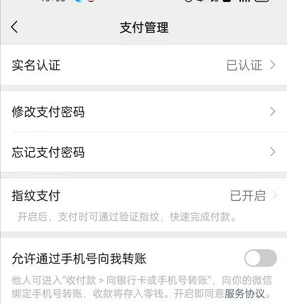 2、进入支付管理,下滑就可以看到这一功能。