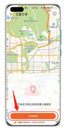 3、进入位置分享后就能查看到ta的位置,但首次使用需要对方先开启授权,点击发送邀请。