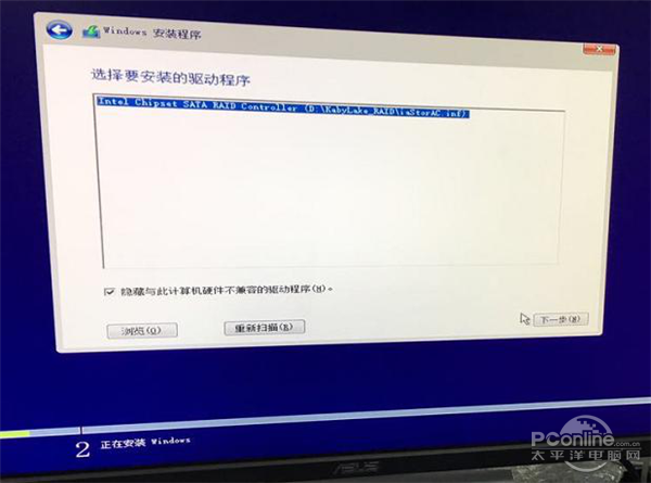 2)进入系统安装界面,如果系统版本太低,请手动加载RAID驱动(新版本Windows 10可以直接识别)