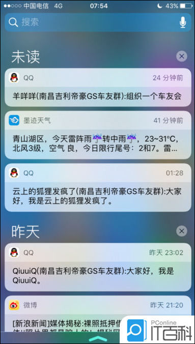 由原来的SIRI建议增加了通知中心的今天页面,下拉的话直接进入siri建议。