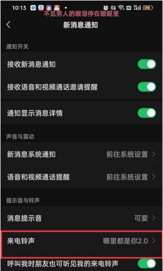 4.来到新消息通知的页面点击【 来电铃声 】;