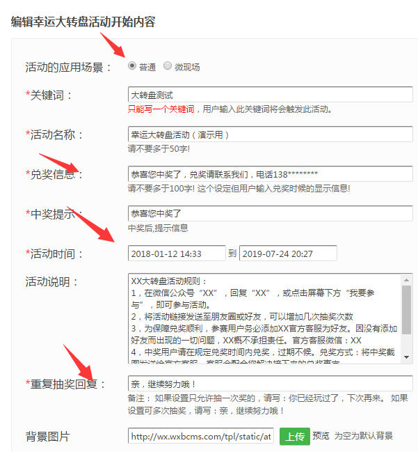 完成以上5步,对于怎么做微信大转盘的问题就迎刃而解了,由于微信更重视用户之间的互动,故而营销推广不不能盲目地套用微博营销的单纯大量广告推送方式。这种方式在微信营销中的效果非常差,会令用户反感,继而取消去企业或商家的微信公众账号关注。对于企业来说,做微信推广重要的一个方面就是提高用户和公众账号之间的黏度,而微信大转盘就是其中最为常见用的最多的活动。