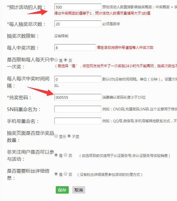 4.接着就是微信大转盘活动的概率设置,这个需要特别注意下,概率是由奖品数量、每人抽奖总次数、预计参与人数,来控制的,所以商家根据已知的数量,计算出来预计参与人数,就能控制活动的概率,添加的页面也有具体的提示,按照公式计算即可,可以选择分享邀请制和每日限制。
