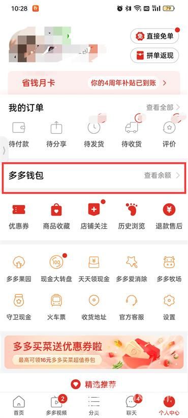 2.然后在个人中心的页面中点击 【多多钱包】;