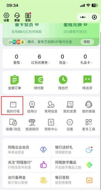 5、在我的页面中点击 【我得行程】;