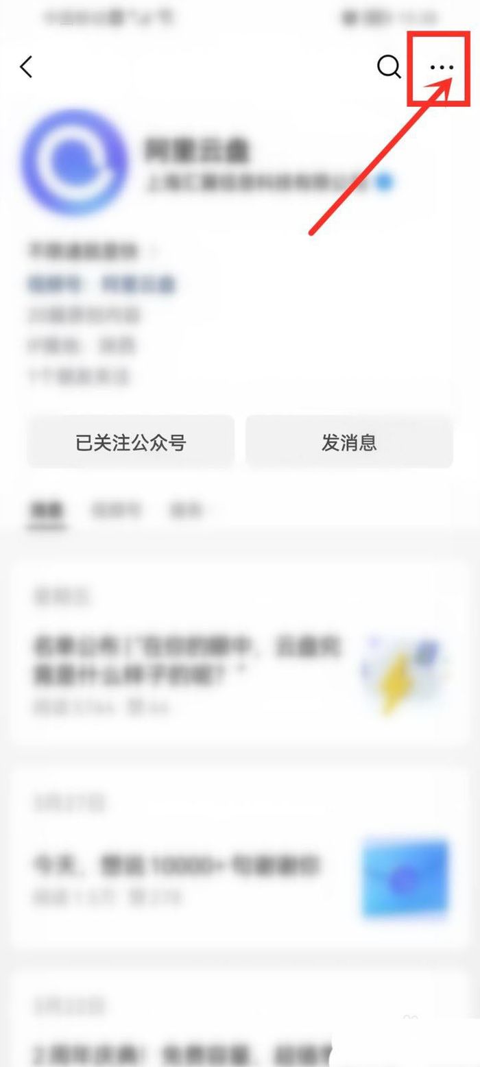 第二步、在公众号主页,点击右上角“ 三个点” 图标。
