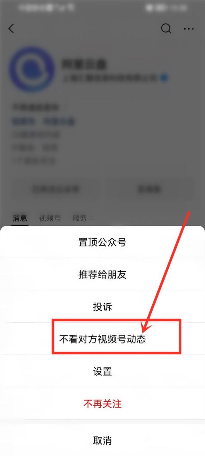 第三步、选择“ 不看对方视频号动态 ”选项,即可设置不看公众号的视频号。
