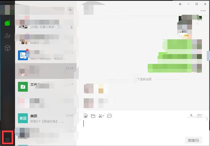 第六步,然后打开电脑微信,点击右下角三横图标,