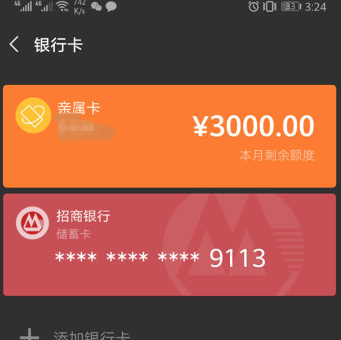 亲属卡使用场景可用参考官方的说明,部分场景无法使用。
