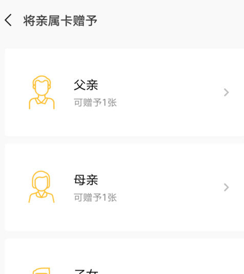 进入后,可以看到亲属卡简单的介绍,我们直接点击下方的“赠送亲属卡”按钮,进入赠送界面。
