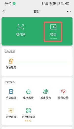 第二步:在支付中点击【钱包】进入管理你的钱包和各类绑定的卡;