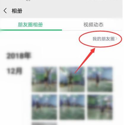 3、在相册的界面中我们需要点击右上角的【我的朋友圈】;