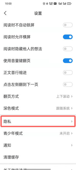 第三步:首先开启【加入书架后自动卡开启私密阅读】,先隐藏你的阅读动态;