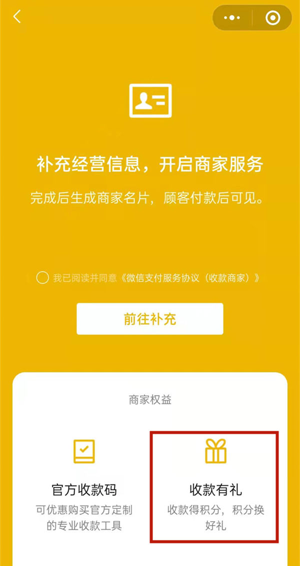 4、点击补充经营信息,开启更多服务后,即可获得收款有礼权益。