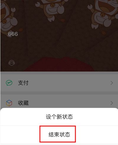 浮窗中为出现“设个新状态”、“结束状态”、“取消”三个选项。删除状态可以直接点击“结束状态”。