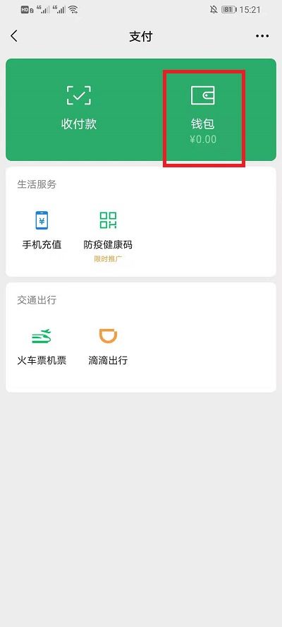 3、在支付界面点击【钱包】进入到钱包界面;