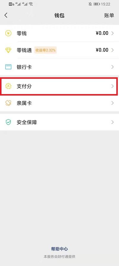 4、在钱包界面点击【支付分】进入到支付分界面中;