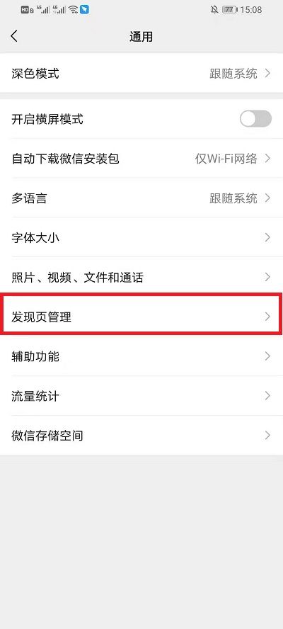 4、在【通用】界面点击中间的【发现页管理】进入到这个界面中;
