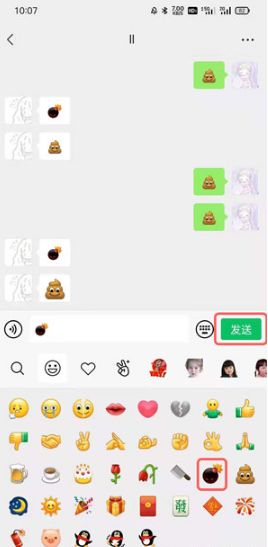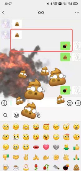 4、然后让好友发送一个【炸弹】表情给我们,触发特殊满屏特效,当好友的表情发送超过3秒,再发送炸弹只会显示炸弹特效;