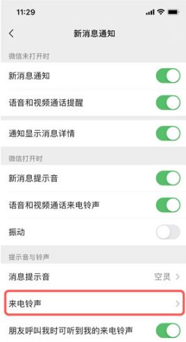 -同样的需要在【新消息通知】中,点击【来电铃声】,此功能为最新版微信才有的功能,没有此功能的用户需要更新微信到最新版(8.0.8);