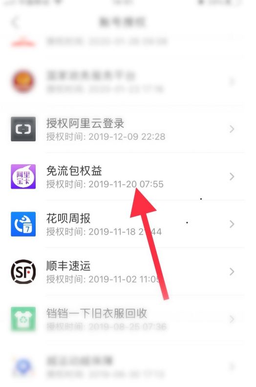 4、接着进入账号授权的界面之后,当前显示了所有授权的小程序,点击想要解除授权的选项