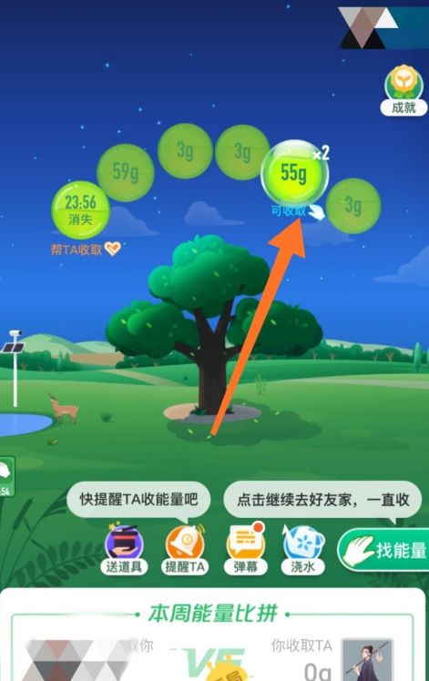 6、进入好友森林界面,可以看到在能量上出现 X2标志, 意味着我们可以收取2次能量。