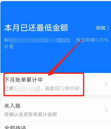5、如果到了还款日,直接点击还款,如果还未到还款日,具体的分期金额在下月账单中查看,每个月的还款金额只是分期到每个月的金额,并非全部花呗金额。