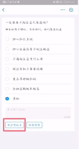 5勾选理由,点击“我还想放弃”,确认放弃。