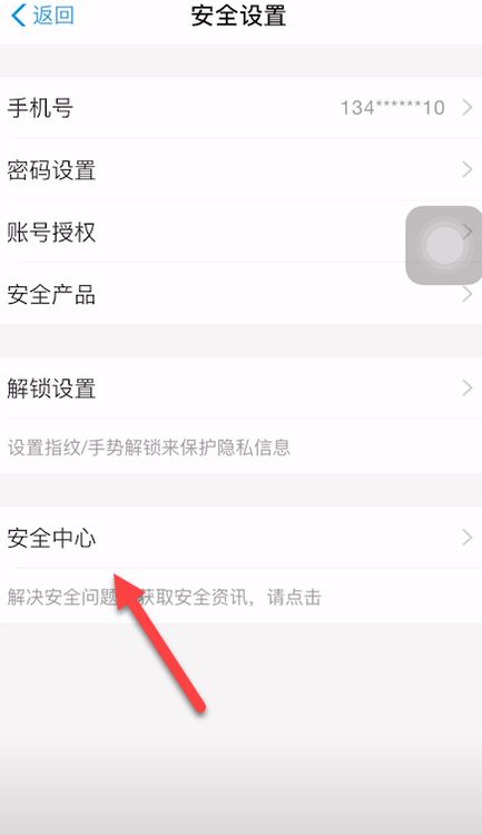 4点击安全设置界面中的“安全中心”。