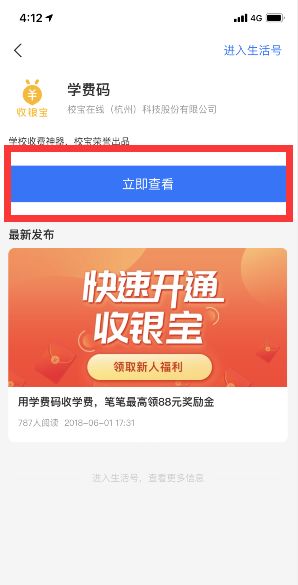 1、打开支付宝,输入学费码,点击下方 生活 号进入