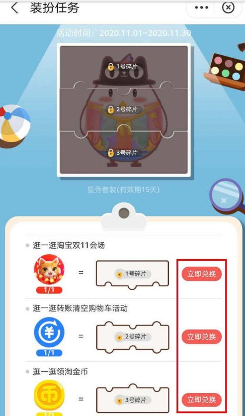4、进入装扮任务界面,装扮分为三个碎片,完成对应的任务;