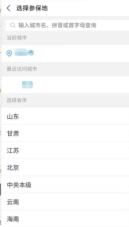 4、选择一个城市名称,就是你的社保卡缴费地。