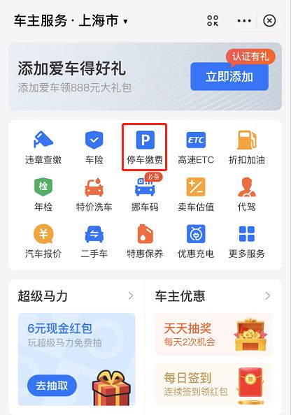 2.可以直接点击下方的停车服务,也可以进入主页面查找停车场