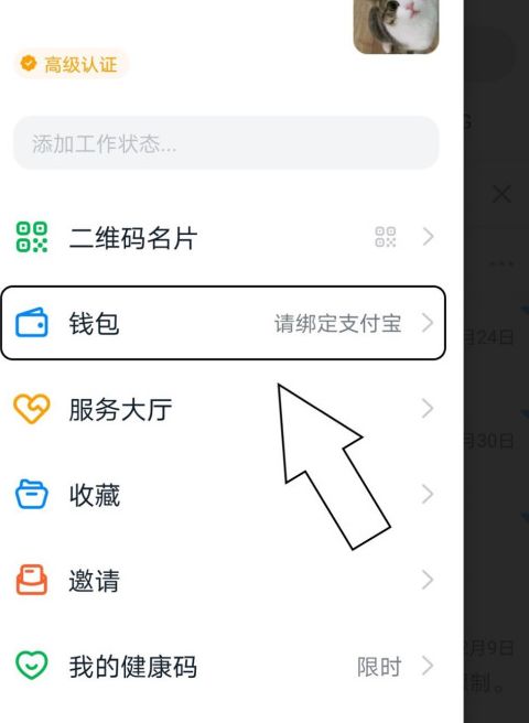2、左侧弹出个人资料的功能栏,选择钱包。