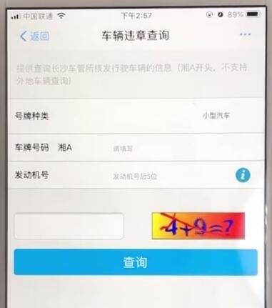 5、最后进入如下页面,填写车辆信息,输入验证码,点击【查询】即可查询了。