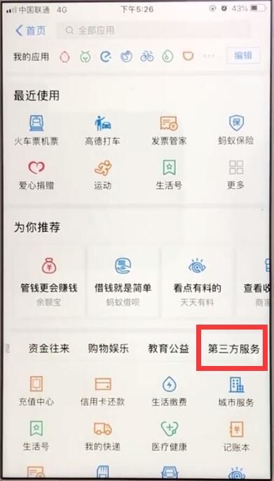 4、接下来点击第三方服务下面的【大麦演出票】,