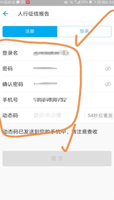 6注册登录名、设置密码、留手机号,获取验证码,点“提交”。