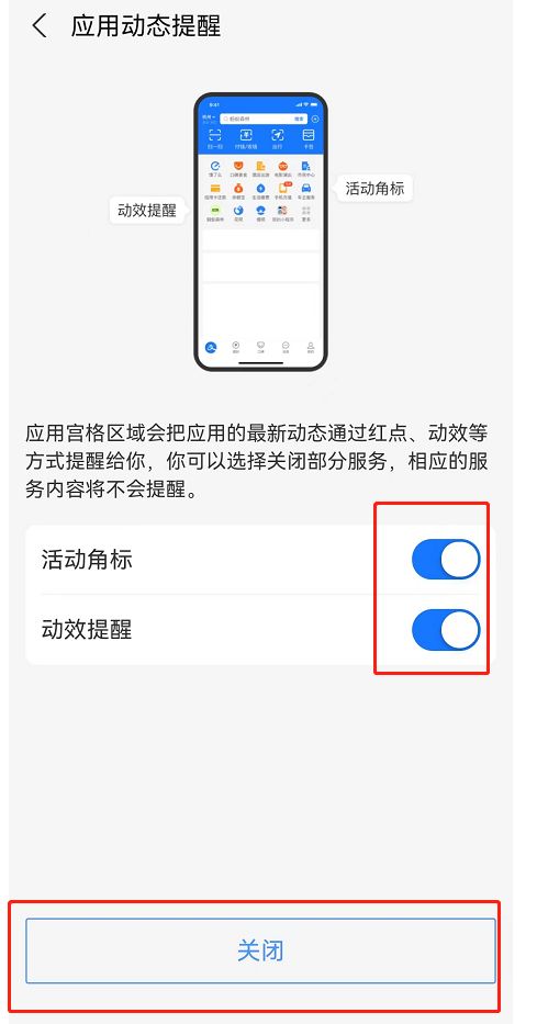 支付宝首页应用动态提醒怎么关闭
