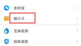 1、打开支付宝选择银行卡的选项