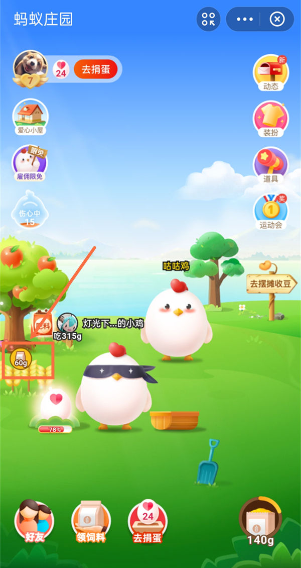2、点击麦子上面的 饲料图标 ,即可收取麦子。
