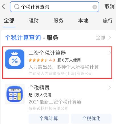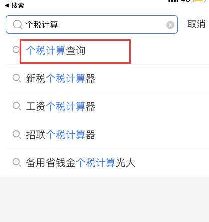 2、在 搜索 框中输入 个税计算 ,点击个税计算查询