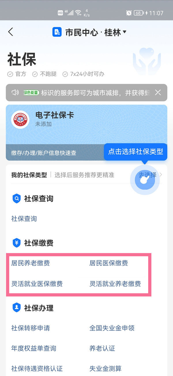 3、选择 居民养老缴费 或 灵活就业养老缴费 ,完成缴费即可。