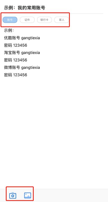 4.备忘分类里共有四种标签,方便用户查找使用。还支持图片记录,可以导入本地照片,或者直接拍摄