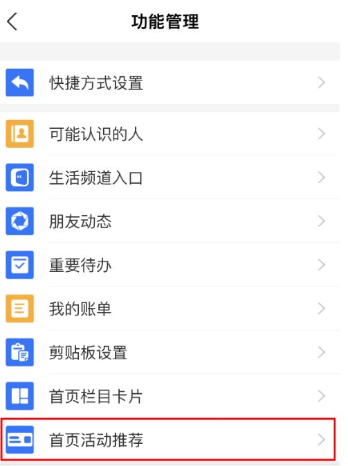 3、在功能管理页面下方可以看到 首页活动推荐 ,点击进入。
