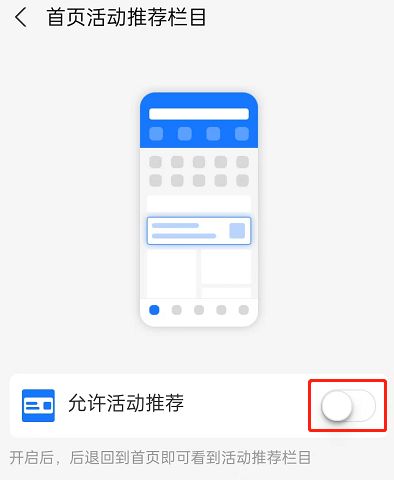 5、移除好卡片后,我们返回到功能管理页面,点击进入首页活动推荐。