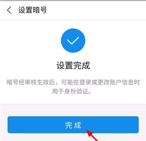 4、在设置完成页面,点击 完成 ,这样暗号就设置完成了,